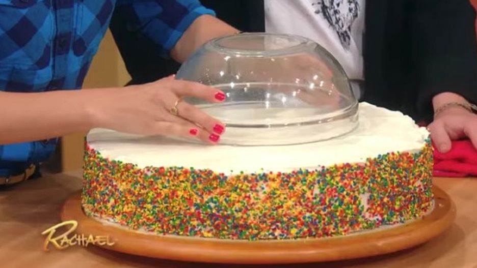 Najlepiej wykorzystać do tego... miskę. Tak, dobrze czytasz! Dzięki naczyniu zaznaczysz na torcie okrąg i wyznaczysz zewnętrzny pierścień, który zaczniesz kroić i rozdzielisz między gości. Jeśli nie zjecie całego ciasta, w środku zostanie nienaruszony tort. Prawda, że genialne?