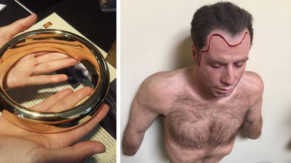 Manekin z torsem Johna Travolty, który został użyty w scenie ściągania twarzy.