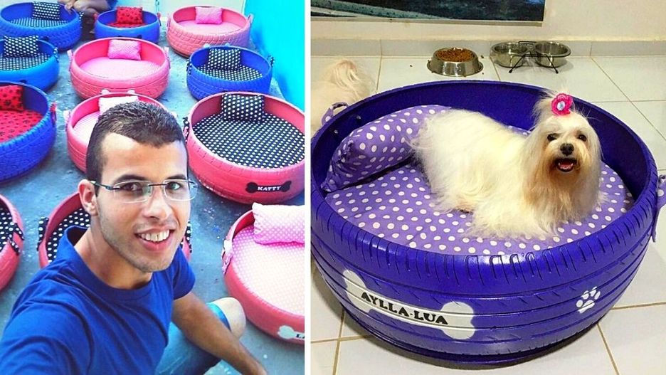 Brazylijczyk zbiera stare opony i przerabia je na legowiska dla zwierząt. Praktyczny recykling