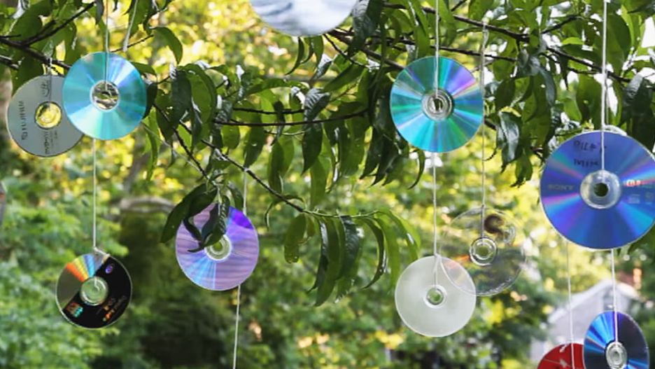 Ludzie zaczynają wywieszać płyty CD na drzewach w ogrodzie. Dzięki nim mają więcej spokoju