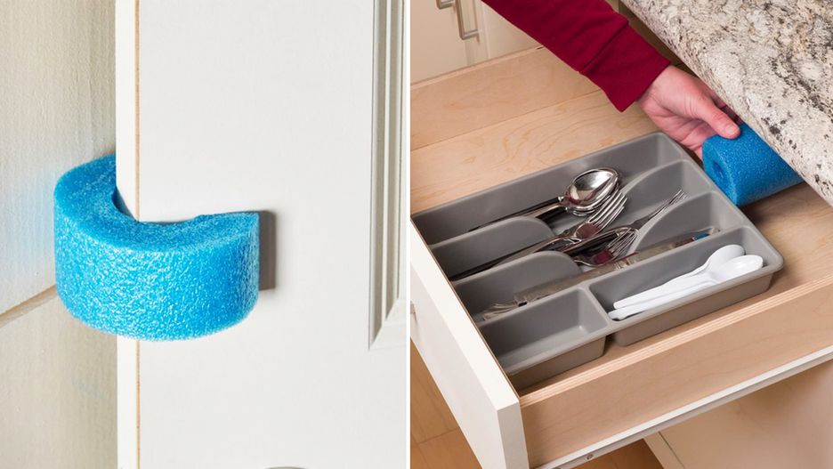 Podczas gwałtownego otwierania drzwi zdarza się, że uderzają one o ścianę i rysują ją. Jeśli chcesz tego uniknąć wystarczy, że wytniesz mały kawałek z piankowego makaronu i umieścisz go na drzwiach.