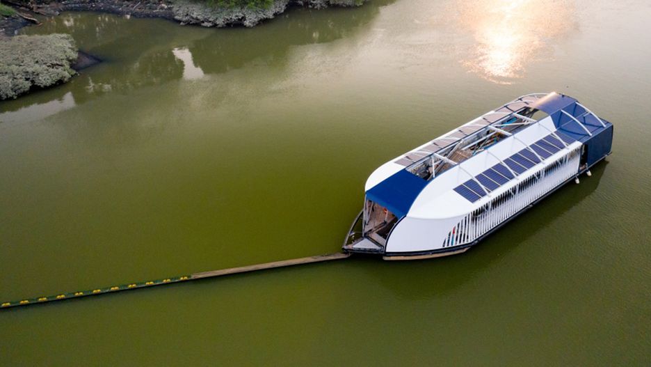Wodny odkurzacz umieszczony jest na 2/3 szerokości rzeki, następie od maszyny do brzegu prowadzone jest ramię, które blokuje przepływ śmieci. Nurt rzeki spycha śmiech w pobliże statku, a następnie są one wyławiane i przenoszone do pojemników. Kiedy kontenery są pełne odpadów, statek cumuje do lądu, a następnie odpady trafiają do recyklingu. Maszyna jest zasilana energią słoneczną.