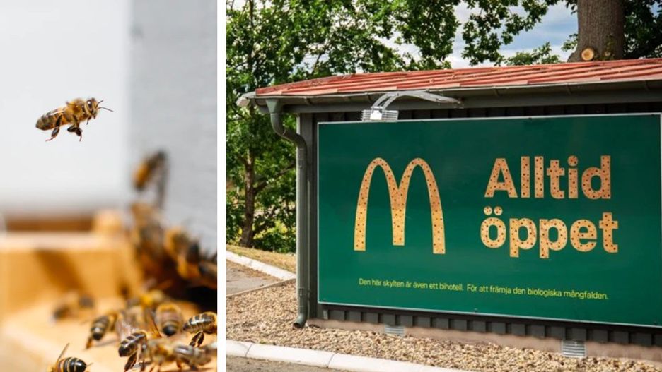 Choć z daleka logo McDonald's wygląda zwyczajnie, to gdy podejdziesz bliżej zobaczysz, że w szwedzkich złotych łukach ukryte są domki dla pszczół. Ten pomysł zrodził się dzięki współpracy restauracji wraz z agencją kreatywną NORD DDB. Dzięki nowym billboardom udało się połączyć przyjemne z pożytecznym, czego wynikiem jest logo, które nie tylko informuje o restauracji, ale także dostarcz schronienia pszczołom. Owady dostają się do domków przez wyżłobione w literach malutkie dziurki, zaś za billboardami znajdują się całe hotele dla pszczół.
