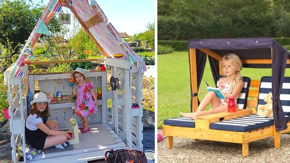 11 pomysłów na wyczarowanie z palet mebli ogrodowych dla dzieci. Maluchy pokochają nowe gadżety