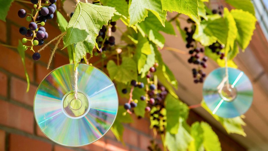 Moja ciocia wiesza płyty CD na drzewach w ogrodzie. Intruzi szybko znikają