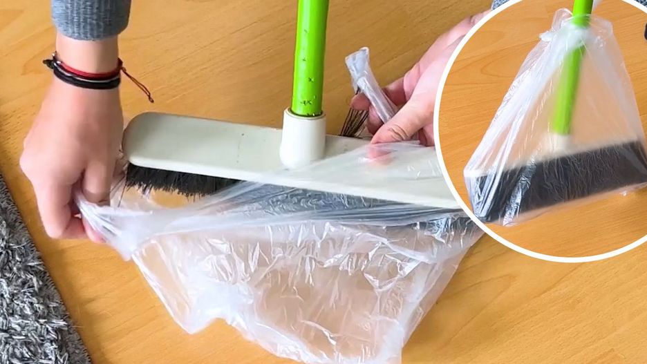 Moja mama zawsze zakłada torebkę foliową na miotłę. Ten patent oszczędza jej sporo czasu!