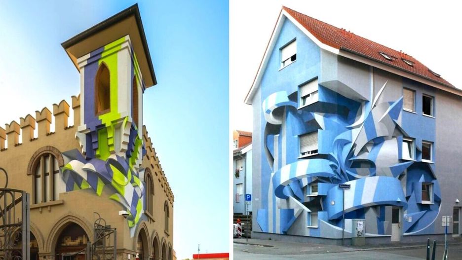 15 trójwymiarowych murali, które przypominają geometryczne rzeźby. Tworzy je włoski artysta