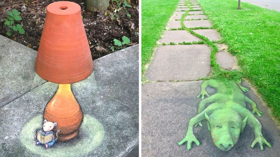 David Zinn jest artystą pochodzącym z USA. Przy pomocy kredy oraz węgla upiększa przestrzeń publiczną. Mury, chodniki, kamienie zaludnia własnoręcznie namalowanymi małymi stworkami. Powołał do życia zielonego potworka o imieniu Sluggo, a także latającą świnkę Philemonę.