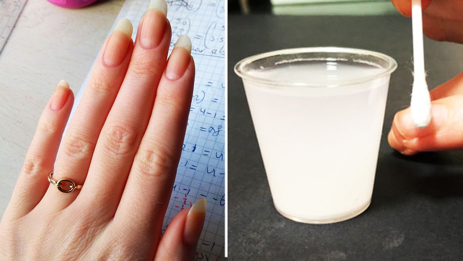Cytryna jest dobrym źródłem witaminy C, dzięki czemu wzmacnia paznokcie i przyspiesza produkcję kolagenu. Cytryna zawiera także alfa-hydroksykwas, dzięki czemu pomaga wyleczyć wszystkie małe pęknięcia na paznokciach. Wyciśnij połówkę cytryny, zmieszaj z 1 kubkiem ciepłej wody i zamocz paznokcie przez około 5-10 minut.