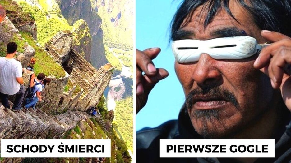 Inuici (rdzenni mieszkańcy Alaski, Grenlandii, Syberii, Kanady) robili okulary z kości, drewna lub rogów. Miały one wąskie szczeliny i dzięki nim słońce odbite od śniegu nie porażało oczu. To pierwsze zimowe gogle.