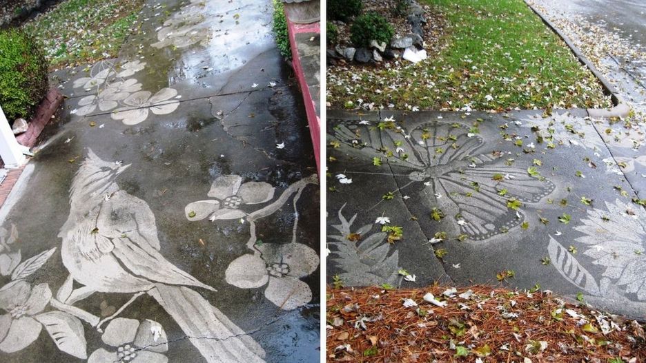 Dianna Wood to artystka malarka, która lubi próbować nowych nietypowych rzeczy. Jakiś czas temu wpadła na pomysł aby stworzyć na chodniku swojej sąsiadki bajecznie wyglądające obrazy za pomocą myjki ciśnieniowej.