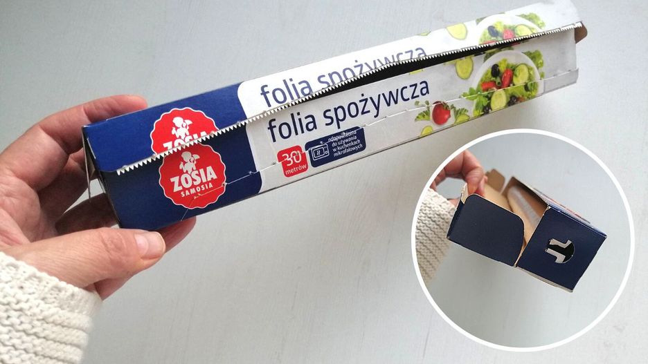 Używamy folii spożywczej do przechowywania różnej żywności. Niektórzy pakują w nią kanapki do szkoły lub pracy. Zwykle po wyjęciu jej z opakowania – wyrzucamy je do kosza, a to właśnie pudełko folii ma aż dwie ukryte funkcje! Rzadko zdarza się, że urwiemy ładny, prosty kawałek, a one bardzo nam w tym pomogą.