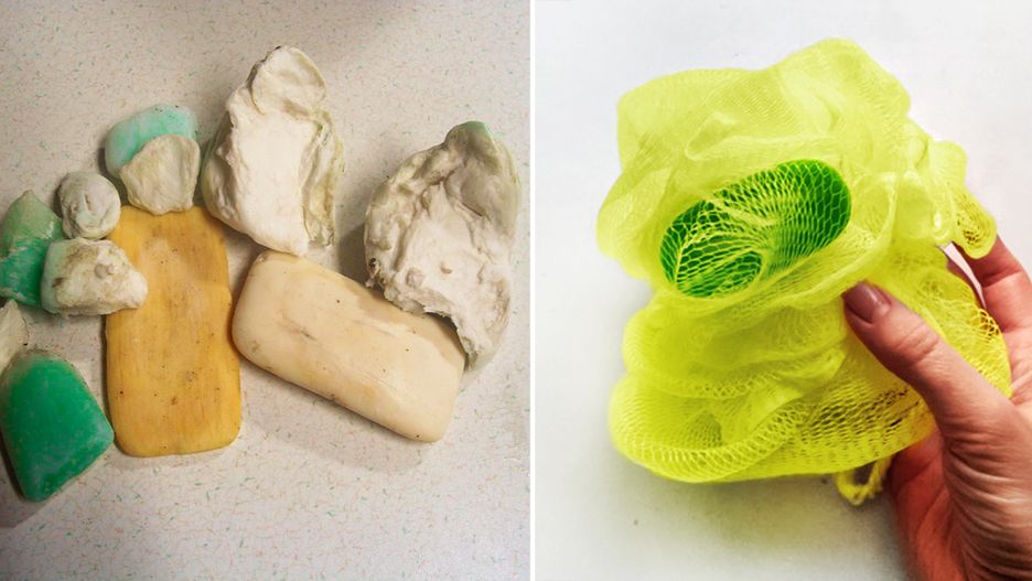 Jeśli mydelniczka zawsze jest brudna od mydlin, użyj kawałka gąbki