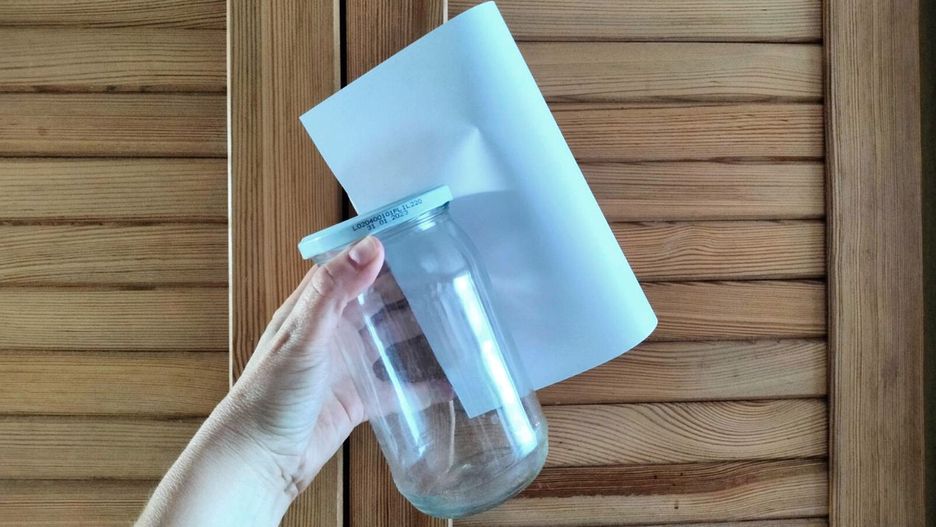 Aby przygotować taką łapkę, potrzebujesz kilku rzeczy: słoik z nakrętką, banana oraz kartki papieru. Zacznij od odkręcenia nakrętki i wywiercenia w niej dziury na szerokość małego palca. Jeśli nie masz wiertarki, wybierz słoik z plastikową nakrętką — będzie łatwiej ją przebić np. przy pomocy rozgrzanego gwoździa. Następnie weź owoc, najlepiej banana i pokrój kilka plasterków. Wrzuć je do słoika i zakręć. Ostatnim krokiem jest zrobienie rulonika z papieru tak, by jedna końcówka wchodziła do środka słoika. Sklejamy brzegi taśmą, by kartka się nie rozprostowała. W ten sposób przygotowaliśmy łapkę na muchy, które zwabione zapachem banana wlecą do środka, lecz nie będą w stanie uciec z naczynia. To humanitarny i ciekawy sposób na wykorzystanie domowych rzeczy do walki z owadami. Kiedy wyłapiesz muchy, możesz je wypuścić na zewnątrz.