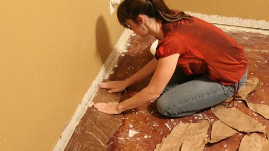 Podłoga 'z papieru' nadaje się do powierzchni betonowych i takich z jastrychu i sklejki. Zanim zabierzesz się do pracy, musisz przygotować grunt. Wyczyść wszystko dokładnie i pozbądź się starych wykładzin. Jeśli w podłodze betonowej są dziury, muszą one być najpierw wypełnione. Tak więc do tego, aby położyć papier potrzebna jest gładka, czysta i sucha podłoga.