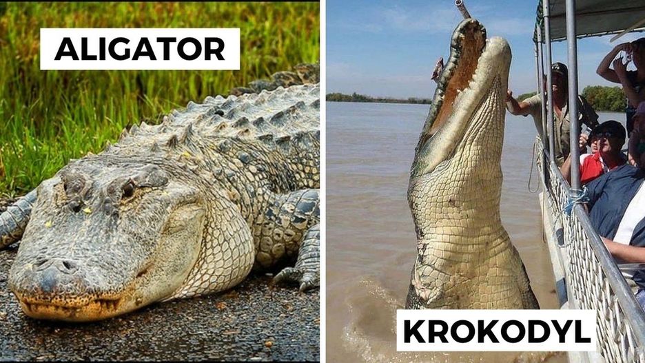 Wbrew pozorom te dwa prehistoryczne gady różnią się diametralnie w szczególności wyglądem. Krokodyl ma charakterystyczną, wydłużoną szczękę w kształcie litery V oraz jego zęby są nad wyraz dobrze widoczne, gdy zwierzę ma zamkniętą paszczę. Z kolei aligator ma szczękę o wiele krótszą i w kształcie litery U, a widoczne są tylko zęby z górnej linii.