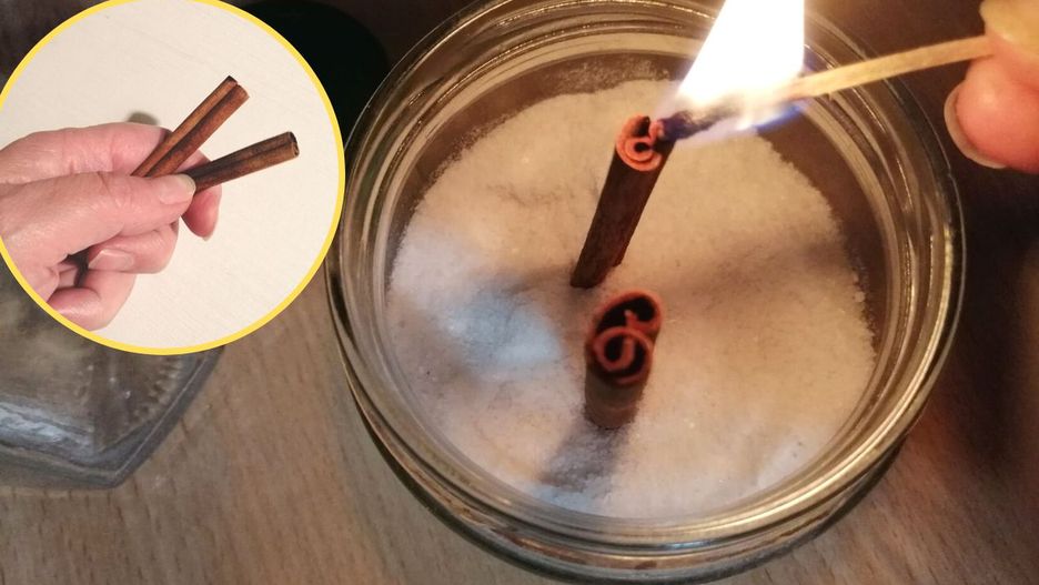 - Na koniec weź 4 laski cynamonu. Dobrze opal je z jednej strony, aby wydobyć ich zapach.