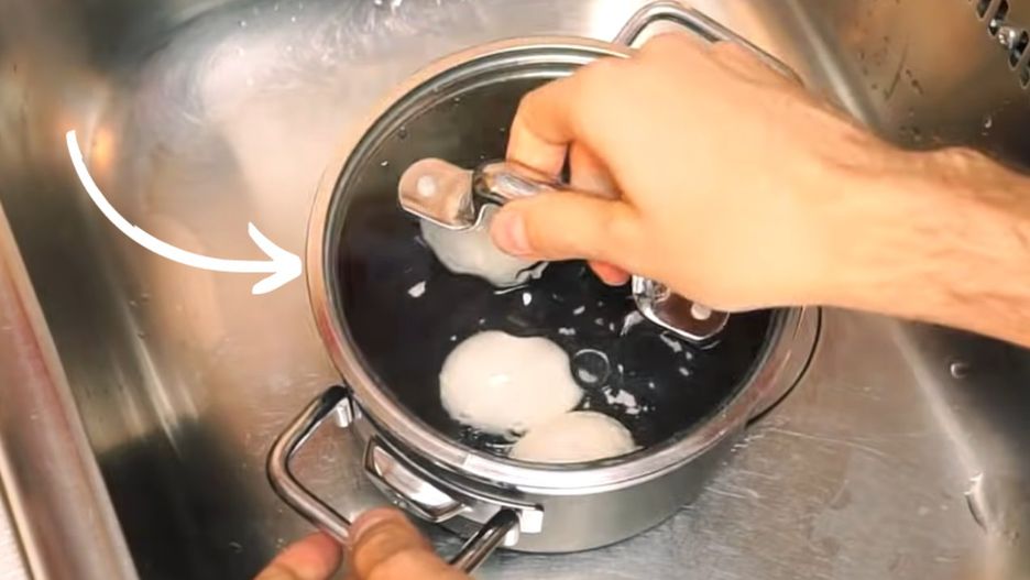 - Energicznie potrząsaj garnkiem z jajkami przez kilka sekund (mocno trzymając pokrywkę na swoim miejscu).