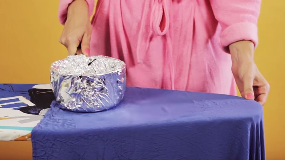 Zagotuj wodę w rondlu, a następnie ją wylej. Dno garnka będzie wystarczająco gorące, by mogło działać jak żelazo. Ułóż ubrania na równej powierzchni i udawaj, że to żelazko. Będzie to wyglądać zabawnie, ale na pewno zadziała! Dodatkowo, jeśli chcesz przyspieszyć proces, podgrzany garnek możesz zawinąć folią aluminiową, a wymięte ubranie delikatnie spryskać wodą.
