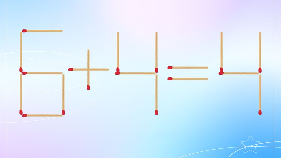 Przyjrzyj się równaniu jeszcze raz. Zacznij od pierwszej cyfry. Jeśli z jej środka zabierzesz zapałkę i przestawisz ja w lukę znajdującą się w prawym boku, z liczby sześć zrobi się... zero. Zero dodać cztery daje... cztery!