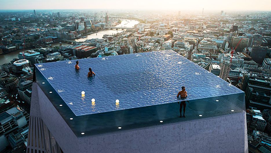 Już wkrótce na szczycie jednego z najwyższych wieżowców w Londynie, powstanie pierwszy przeźroczysty basen, zapewniający 360-stopniową panoramę na całe miasto - w końcu będzie znajdował się na 55 - piętrze hotelu! Pojemność basenu wynosić będzie blisko 600 tysięcy litrów. Patrząc na wizualizację budynek, jak i sam basen, będzie wyglądać spektakularnie jest jednak jedno "ale". Jak będzie można się do niego dostać?