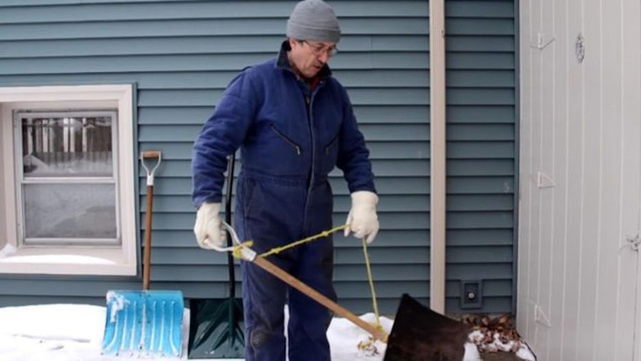 Przywiązał linę do trzonka łopaty do śniegu. Odśnieżanie stało się zdecydowanie prostsze
