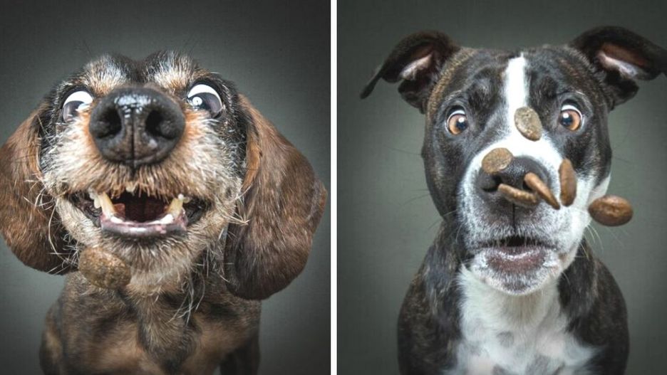 Nasi włochaci przyjaciele uwielbiają jedzonko i dla wielu z nich jest to najlepsza nagroda, jaką mogą dostać. Fotograf Christian Vieler jest znany z tego, że lubi uchwycić moment, w którym psiaki próbują dziabnąć rzuconą im przekąskę.