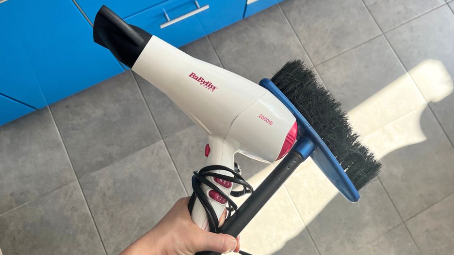 Usunięcie kurzu zbierającego się na szafkach wcale nie musi wiązać się ze skakaniem po meblach czy drabinie. Spokojnie zrobisz to, stojąc na ziemi. Jak? Wystarczy wykorzystać prosty trik. Weź miotłę na długim kiju oraz suszarkę do włosów. Następnie przyklej suszarkę do końca kija od miotły mocną taśmą. Postaraj się porządnie obkleić rączkę suszarki, by dobrze się trzymała i nie spadła w czasie czyszczenia szafek. Podłącz suszarkę do prądu (najlepiej użyj przedłużacza, ponieważ sam kabel może nie wystarczyć). Włącz suszarkę i unieś ją na kiju od szczotki tak, by strumień powietrza zdmuchnął kurz zalegający na górach szafek. Kiedy brud spadnie na podłogę, zbierz go miotłą i szufelką lub odkurzaczem.