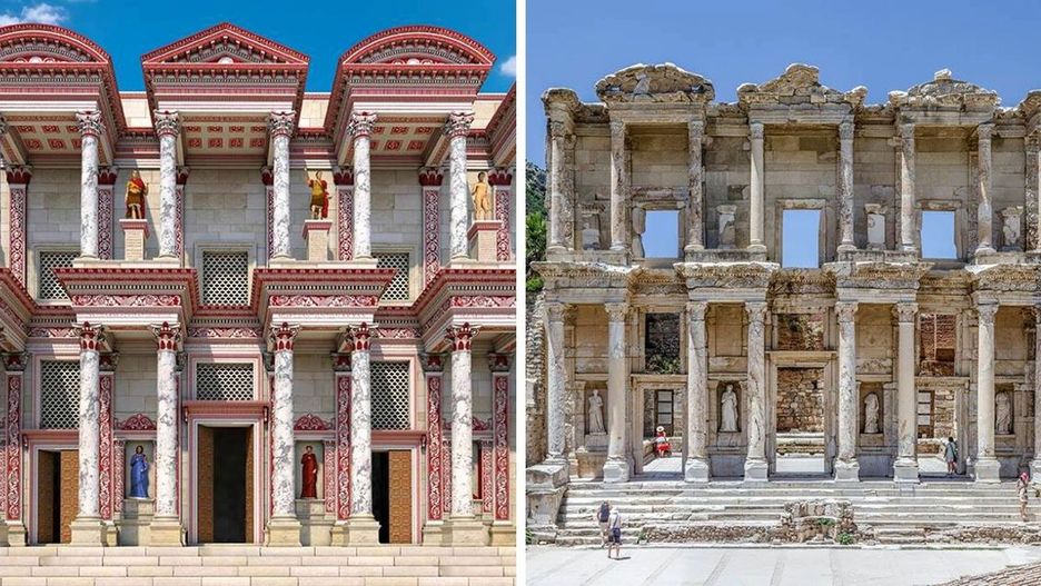Artysta wykonał wizualizację 7 zabytków Efezu. Starożytne miasta kipiały kolorami i wcale nie były białe