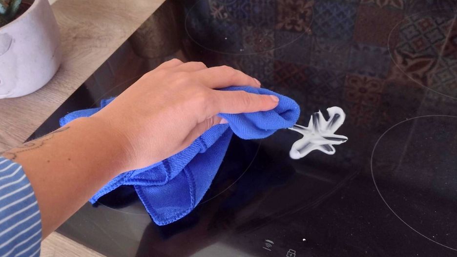 Robię kleksa na płycie indukcyjnej i rozcieram. Rysy rozpływają się w powietrzu
