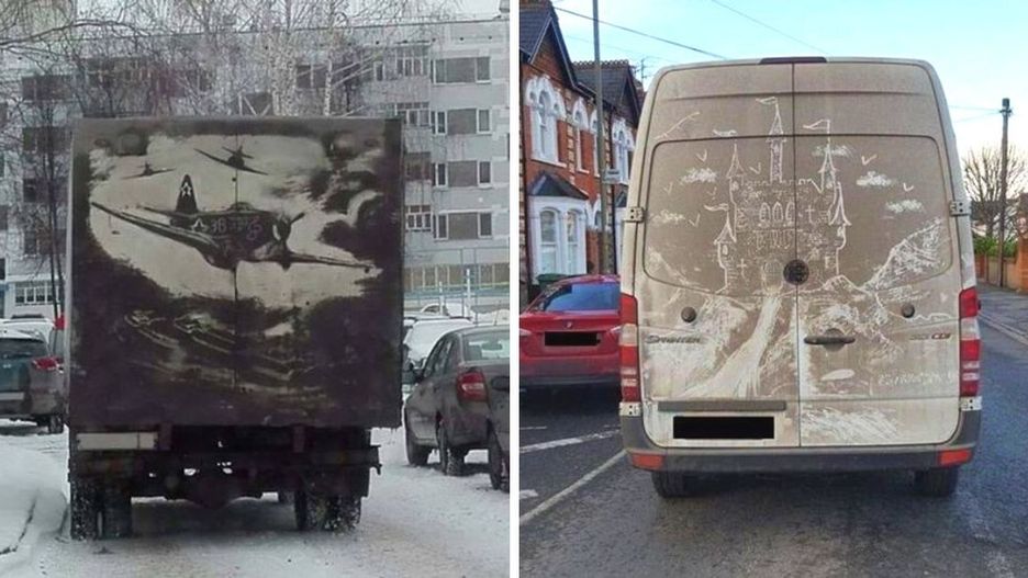 15 rysunków na brudnych autach, które są prawdziwymi dziełami sztuki