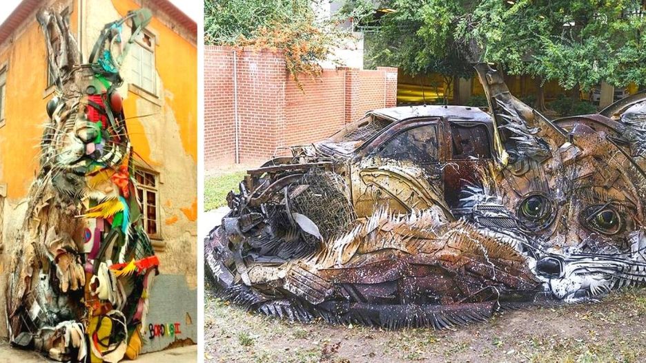 Bordalo II to niezwykle świadomy i troszczący się o środowisko naturalne artysta. Pochodzi z Portugali, a swoje rzeźby wykonuje z odpadków oraz tego, co znajdzie na śmietnikach. Jego zwierzęta powstają m.in. z plastiku, opon, metalu. To surówce, które zagrażają ich życiu, dlatego tak ważne jest, aby nie trafiły do oceanów czy lasów.