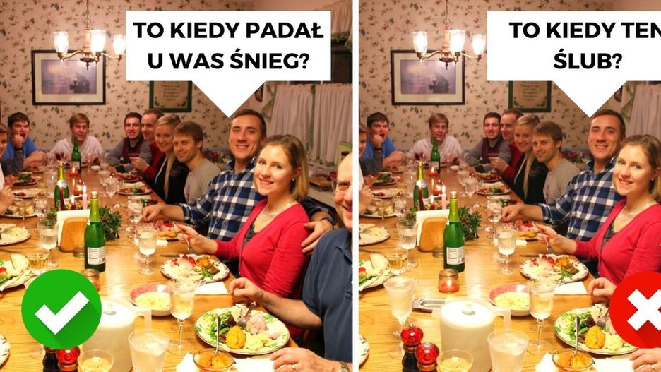 Święta oraz uroczystości rodzinne to doskonały czas, aby spotkać się ze swoimi najbliższymi. Niestety rozmowy przy stole mogą być dość kłopotliwe. Wszystko za sprawą niewygodnych i krępujących pytań, które niektórzy potrafią bez wahania zadać. Jak wybrnąć z niedogodnej sytuacji? O co lepiej nie dopytywać przy wspólnym obiedzie?