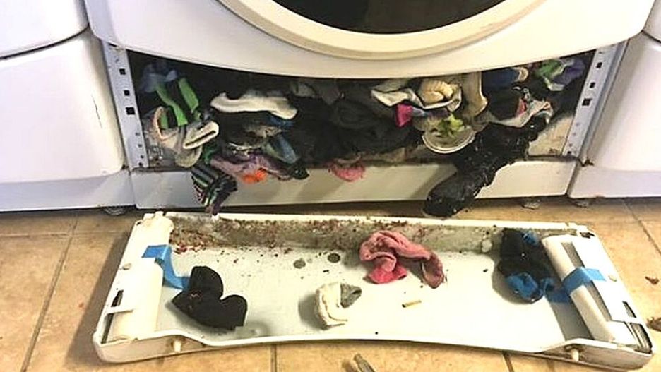 Cathy Hinz postanowiła odkryć sekrety pralki, która najwyraźniej pożerała bieliznę! Kiedy jej mąż rozkręcił przód pralki... oniemiała. Znajdowało się tam tyle skarpetek, że ledwo się mieściły! Dodatkowo znalazła jeszcze bieliznę, kartę kredytową i 7 dolarów.