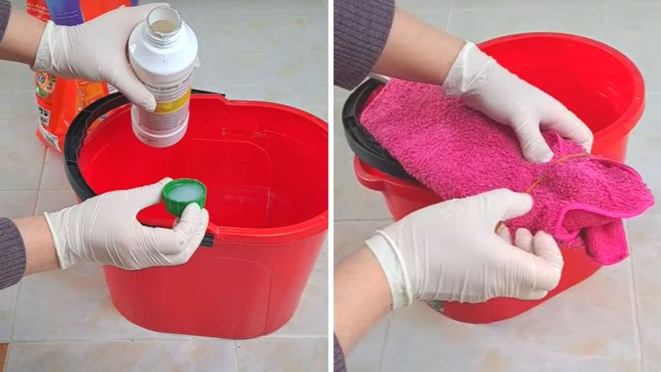 - Weź ściereczkę w mikrofibry i zanurz ją w wodzie z detergentami. Następnie dobrze ją wyciśnij.