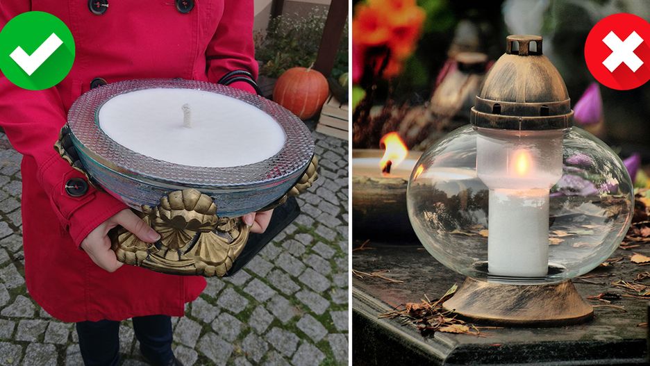 - kup lany znicz zamiast takiego na wkłady. Po zapaleniu nie będzie nadawał się do ponownego użytku.