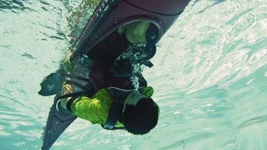 Jeśli płyniesz kajakiem i nagle ten przewróci się do góry nogami, nie próbuj go przewrócić, lecz uwolnij się z niego, chwytając za specjalną taśmę, która powinna znaleźć się w każdym kajaku. To pomoże Ci wypchnąć się z kajaka. Następnie złap kajak i spróbuj podpłynąć do płytkiej wody, aby ponownie do niego wsiąść.