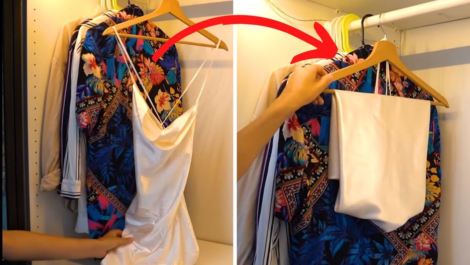 Jak powiesić spodnie, sweter, czy dłuższą sukienkę na wieszaku tak, aby żadne z niego nie spadało? Radzi się, żeby swetrów wcale nie wieszać, ponieważ to poskutkuje ich naciągnięciem w ramionach, ale bez obaw – ta metoda wcale ich nie zniszczy! W Twojej szafie zapanuje ład i porządek, wszystko będzie na swoich miejscach, i nawet na dłuższe sukienki znajdzie się sprytny trik!