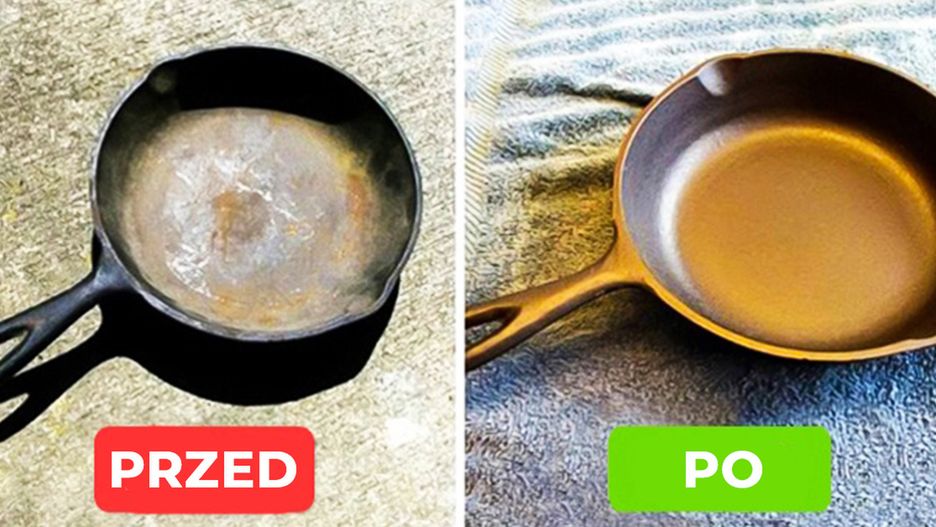 Weź środek dezynfekujący, gumowe rękawiczki, worki na śmieci i biały ocet. Rozprowadź grubą warstwę środka dezynfekującego na patelnię, takie naczynie umieść w worku na śmieci i mocno zawiąż (upewnij się, że środek nie wyschnie). Pozostaw patelnię na 1-2 dni, dopiero po tym czasie spłucz środek dezynfekujący, a następnie powtórz czynność - tym razem pozostaw patelnię na 1 dzień. Po tym czasie zmyj brud gorącą wodą i namocz patelnię w mieszaninie ciepłej wody oraz octu w proporcjach 1:1. Pozostaw miksturę na godzinę, a następnie wyszoruj powierzchnię za pomocą ścierki. Poczekaj jak patelnia wyschnie. Na godzinę włóż ją do rozgrzanego do 250 ° C piekarnika. Po wyciągnięciu ostrożnie nałóż na patelnię warstwę oliwy z oliwek. Gorąca patelnia pochłonie wymaganą ilość oleju, a pozostałą część możesz wytrzeć suchą ściereczką. Jeszcze raz umieść patelnię w piekarniku - tym razem do góry dnem. Po 15 minutach wyciągnij ją i wytrzyj szmatką. Powtórz proces z piekarnikiem 2-3 razy.