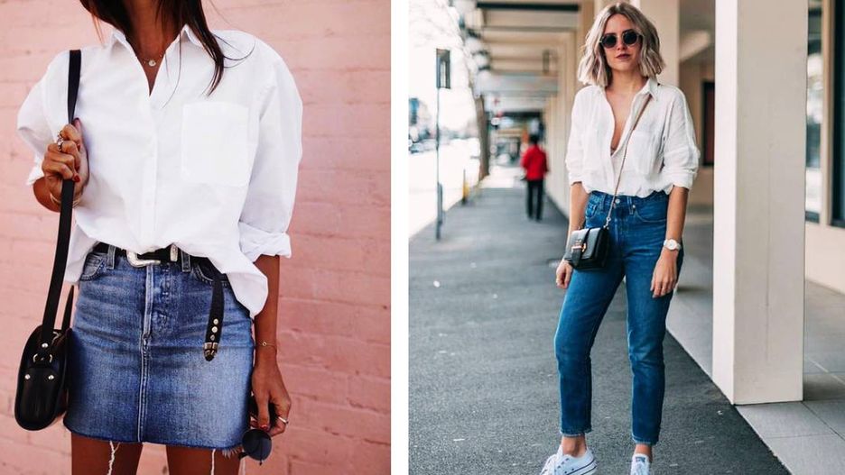 Klasyczna biała koszula jest wybawieniem w wielu sytuacjach. Możesz założyć ją do jeansów lub dowolnej spódnicy, do tego połączyć ją z każdym rodzajem obuwia i dodać do tego biżuterię. Klasyczne kroje białych koszul znajdziesz w każdym sklepie odzieżowym, a każda z nas powinna mieć w swojej garderobie co najmniej jedną taką koszulę. Wybierz prosty materiał, taki jak bawełna, aby pasował do każdej stylizacji. Jedwabna spódnica, biała koszula i buty na obcasie tworzą idealny look!