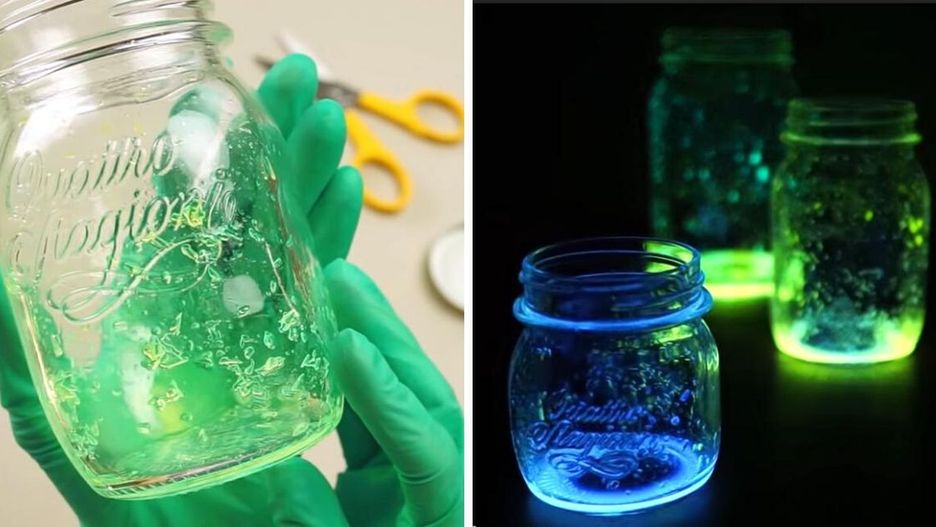 Potrzebne rzeczy, żeby wykonać takie słoiki, to (poza słoikami :) ) nietoksyczne światło chemiczne, nożyczki i młotek oraz okulary ochronne i rękawiczki