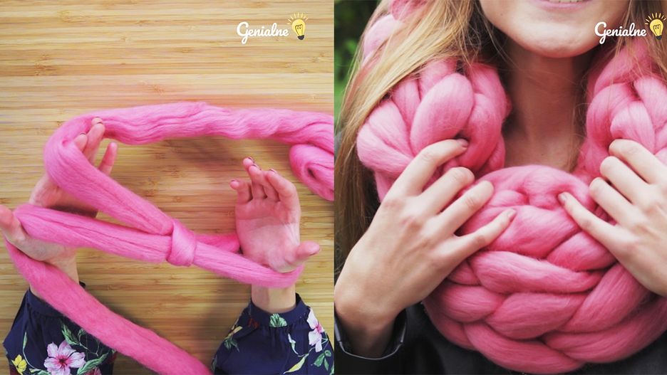 Piękny i ciepły szal z wełny na zimę. Zapleciesz go rękami w 5 minut!