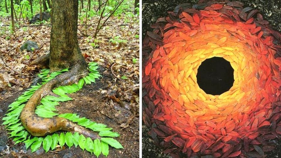 19 niezwykłych przykładów leśnych rzeźb i instalacji z naturalnych kamieni, liści i patyków