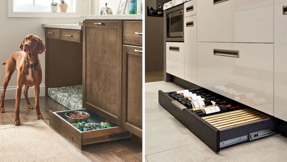 Szuflady skrytki, które znacznie powiększą pojemność kuchni. Pomysłowy projekt!