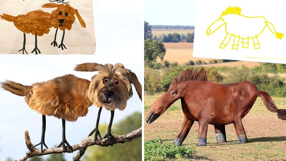 Tajemnicze stworzenia narysowane przez dzieci, które tata ożywił w Photoshopie