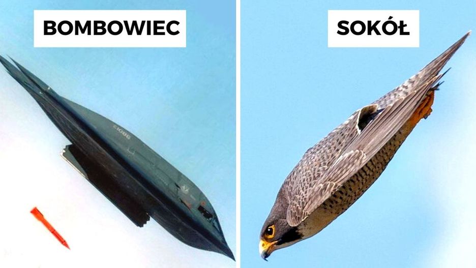 2. Nurkujący sokół wędrowny i B-2 Spirit (amerykański bombowiec)
