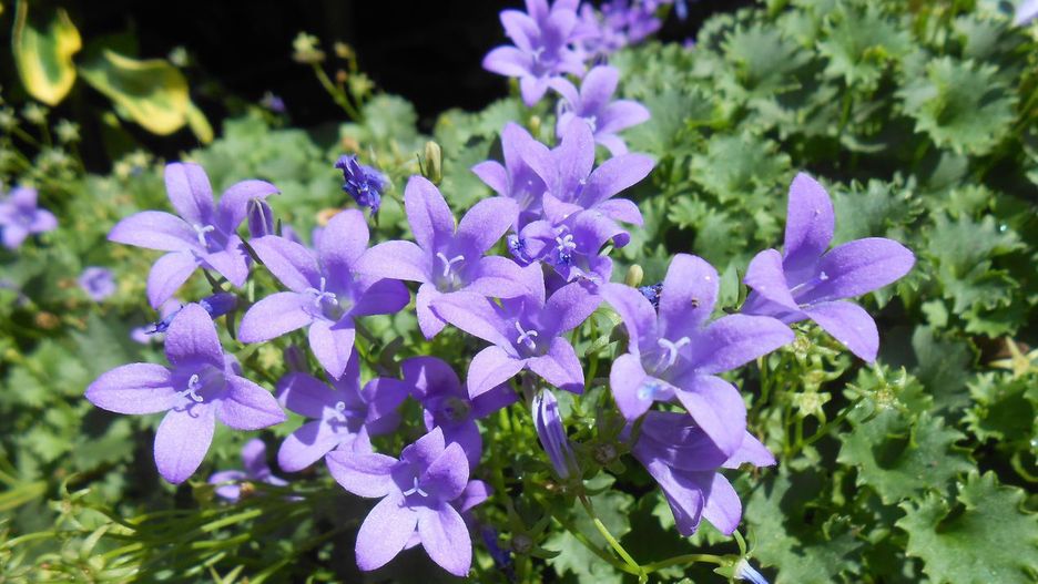 - dzwonek skupiony, czyli średniej wielkości bylina o niebieskofioletowych kwiatach.