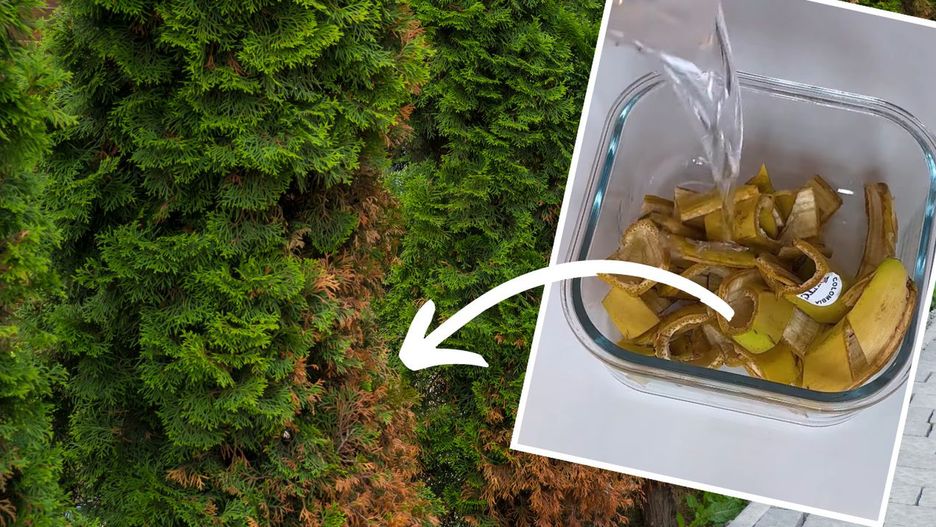 Idealny do tego typu drzewek w trudnym dla nich okresie jest nawóz bazujący na bananach. Wszystko, co musisz zrobić, to zachować swoje skórki od bananów, posiekać je na mniejsze kawałki, wrzucić do kubka lub miski z wodą i wymieszać. Pozwól im się moczyć przez godzinę (lub dłużej, jeśli to możliwe), a następnie wlej wodę do swoich tui. Choć możesz go zastosować nie tylko do nich.