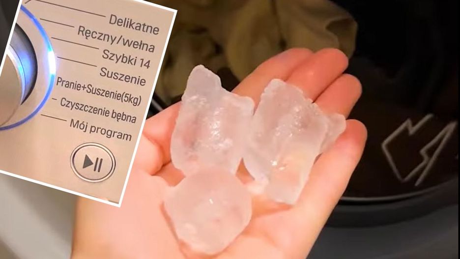 Po skończonym cyklu prania, wszystkie ubrania przenieś do suszarki automatycznej. Następnie do bębna wrzuć garść sporą kostek lodu.