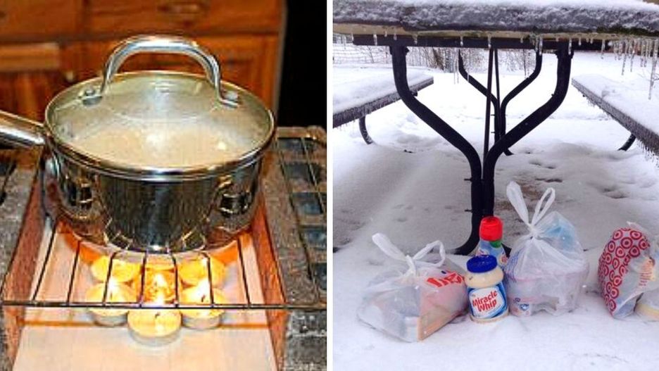 W razie awarii prądu bardzo przydatne są kuchenki turystyczne gazowe lub benzynowe. Jeśli nie posiadasz żadnej z nich, to konkretne danie podgrzejesz w naczyniu żaroodpornych za pomocą świec. W ten sam sposób możesz zagotować wodę w czajniku.